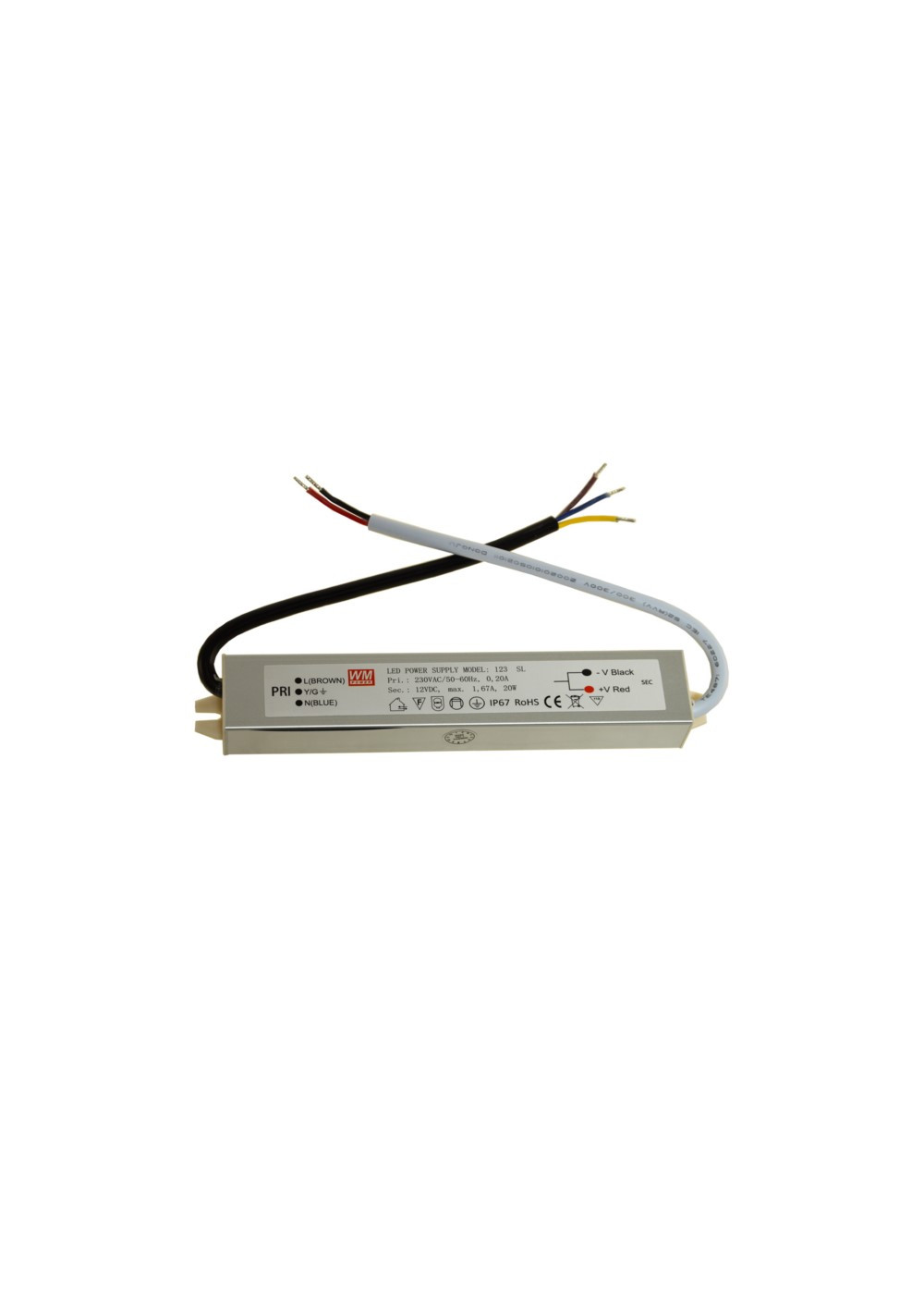 IP67 waterproof LED driver 12V 20W – technical specs